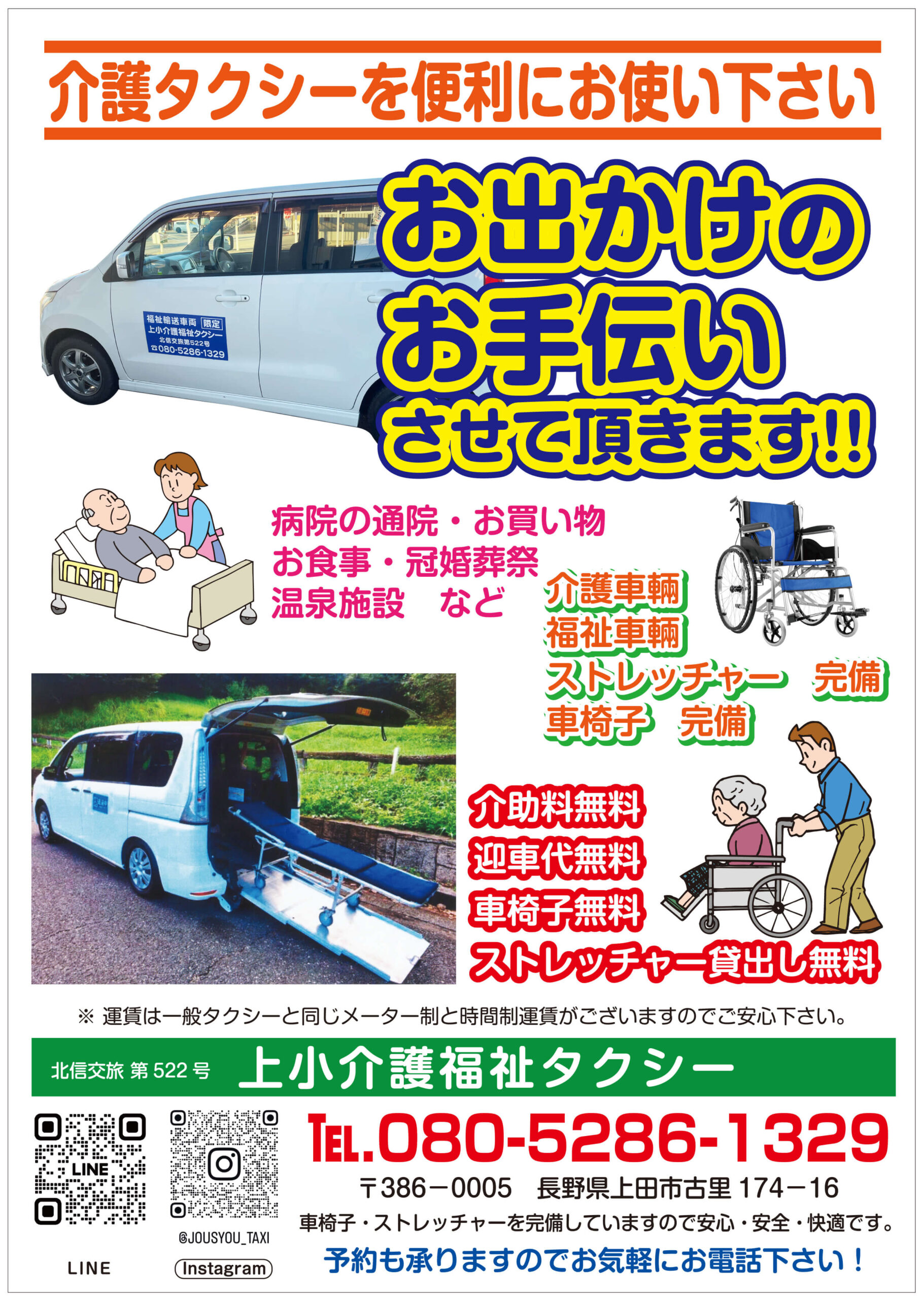 - 遠方への外出や通院、人工透析などの病院受診、時間外の送迎、ご予約・定期的なご利用等も承ります。お気軽にご相談ください。
